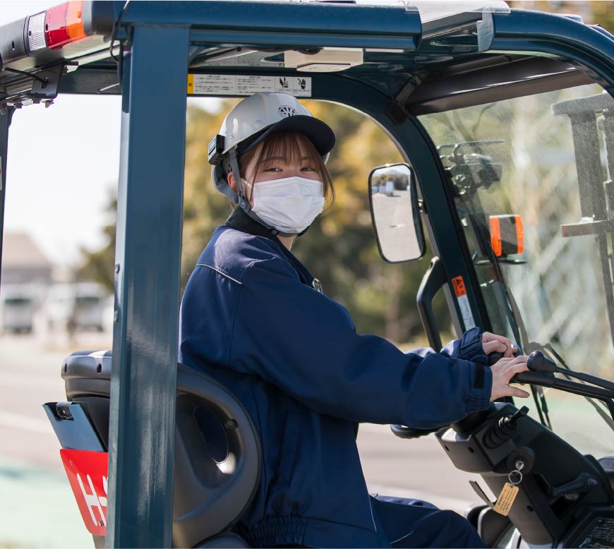 普通の事務ではなく、現場に出る職場に興味がありました。フォークリフトやトラックが間近にあることも今まで無い新しい環境への憧れもあって入社を決めました。誰かが来社した際は必ず全員が立って出迎えるこの会社のマナーは素晴らしく、お客様が来られた時のお茶の出し方やメールの文章なども教えていただきました。